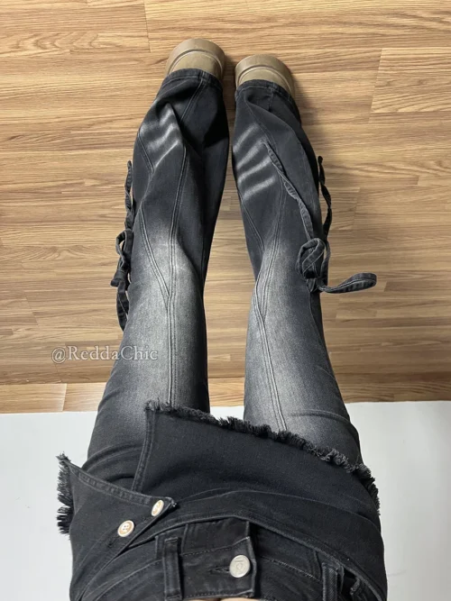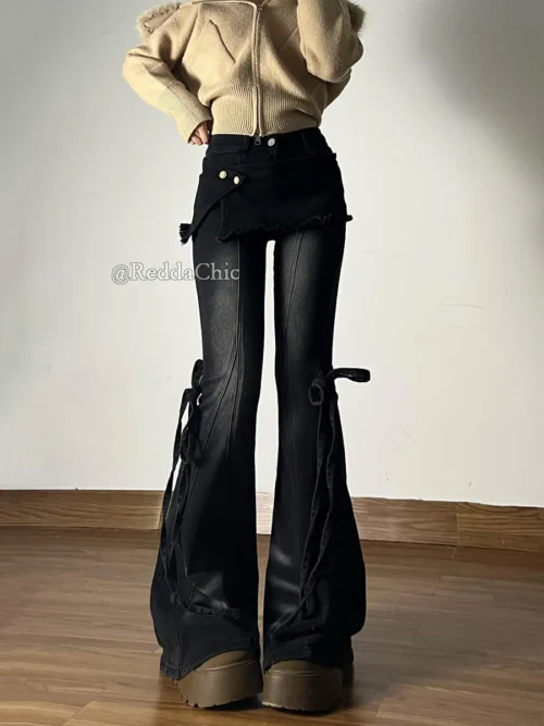 - Model Number: 97016,Wrap Skirt Black Jeans for Woman
